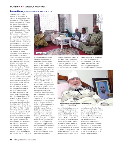 zaouïa. Par exemple, ma grand- Lhasan Chadili, etc. Le soufi sme Tijaniya ; Moulay Abdessalam la direction de son Cheikh actuel