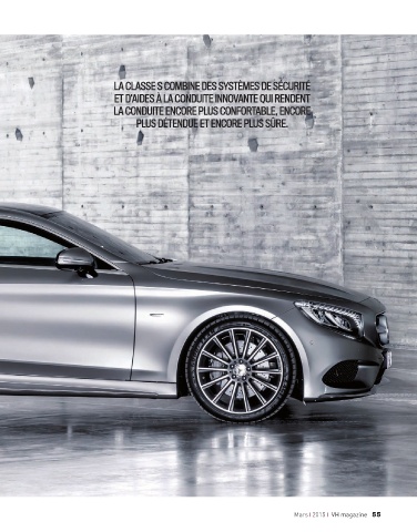 LA CLASSE S COMBINE DES SYSTÈMES DE SÉCURITÉ ET D’AIDES À LA CONDUITE INNOVANTE QUI RENDENT LA CONDUITE ENCORE PLUS CONFORTABLE, ENCORE PLUS DÉTENDUE ET ENCORE PLUS SÛRE. Mars 2015 VH magazine