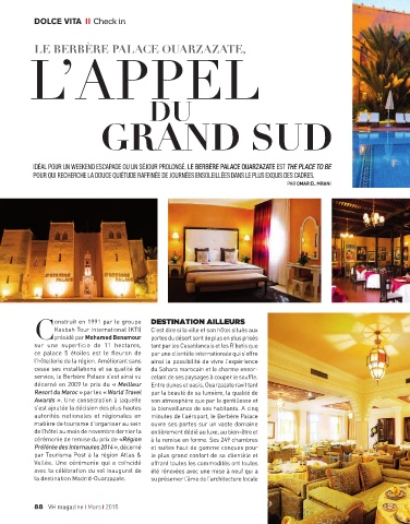 IDÉAL POUR UN WEEKEND ESCAPADE OU UN SÉJOUR PROLONGÉ, LE BERBÈRE PALACE OUARZAZATE EST THE PLACE TO BE