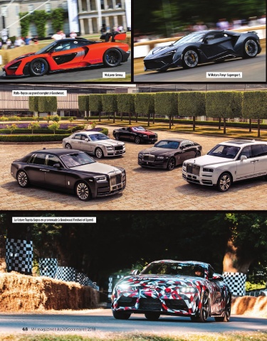 McLaren Senna. W Motors Fenyr Supersport. Rolls-Royce au grand complet à Goodwood. La future Toyota Supra en promenade à Goodwood Festival of Speed. 48 VH magazine Août/Septembre 2018