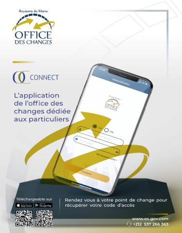 L’application de l’office des changes dédiée aux particuliers Téléchargeable sur Rendez vous à votre point de change pour récupérer votre code d’accès www.oc.gov.com +212 537 266 363