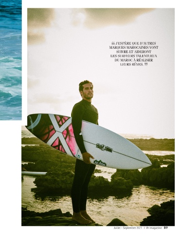 J’espère que d’autres marques marOcaInes vOnt suIvre et aIderOnt Les surfeurs taLentueux du marOc à réaLIser Leurs rêves. Juillet - Septembre 2021 VH magazine 37