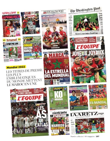 Mondial 2022 les TITRes De PResse les PlUs eMBleMATIQUes DU MONDe MeTTeNT le Maroc en Une Numéro collector VH magazine 127