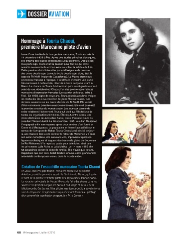 le nom de la première femme pilote des pays arabes, Touria Chaoui.