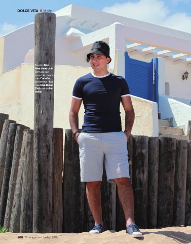 DOLCE VITA I I Mode Tee-shirt Dior Rive bleue club, bermuda clair, tennis bleu marine chez Cortefi el, accessoires : Bob chez Rive Bleue Club, montre Ice watch 108 VH magazine Juillet 2010
